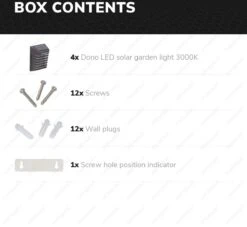 De Dono solarlamp heeft een IP65 beschermingsklasse, wat betekent dat de lamp zowel stofdicht als waterdicht is. Door deze bescherming kun je de lamp op iedere gewenste plek buitenshuis gebruiken. De solarlamp kan ook tegen extreme kou, sneeuw, ijzel, vorst en tegen extreme hitte. Doordat de lamp wordt geleverd met roestvrijstalen schroeven, hoef je je ook niet druk te maken over roest en andere vochtschade. Zorgeloos genieten dus!