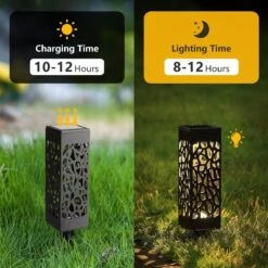 Wanneer ze op een plek worden geplaats met veel direct zonlicht, laadt de batterij volledig op in 10 uur en biedt het 8-10 uur verlichting in een prachtig opvallend patroon