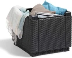 Maak je loungeset compleet met deze multifunctionele kubusvormige poef van Allibert. Hij zal een fantastische aanvulling op je meubelset zijn.