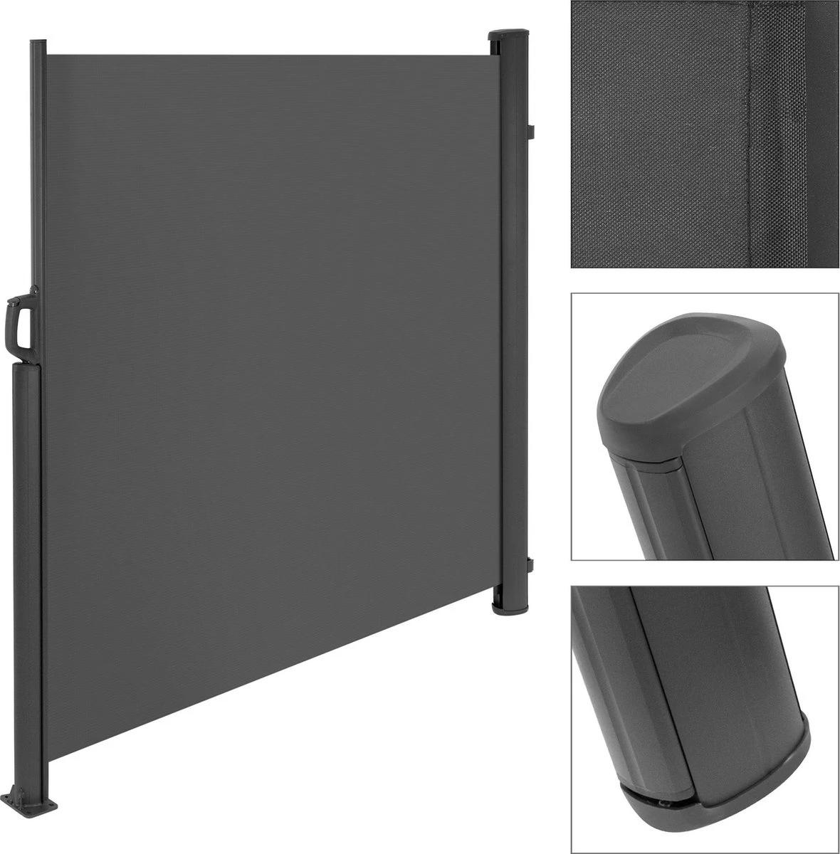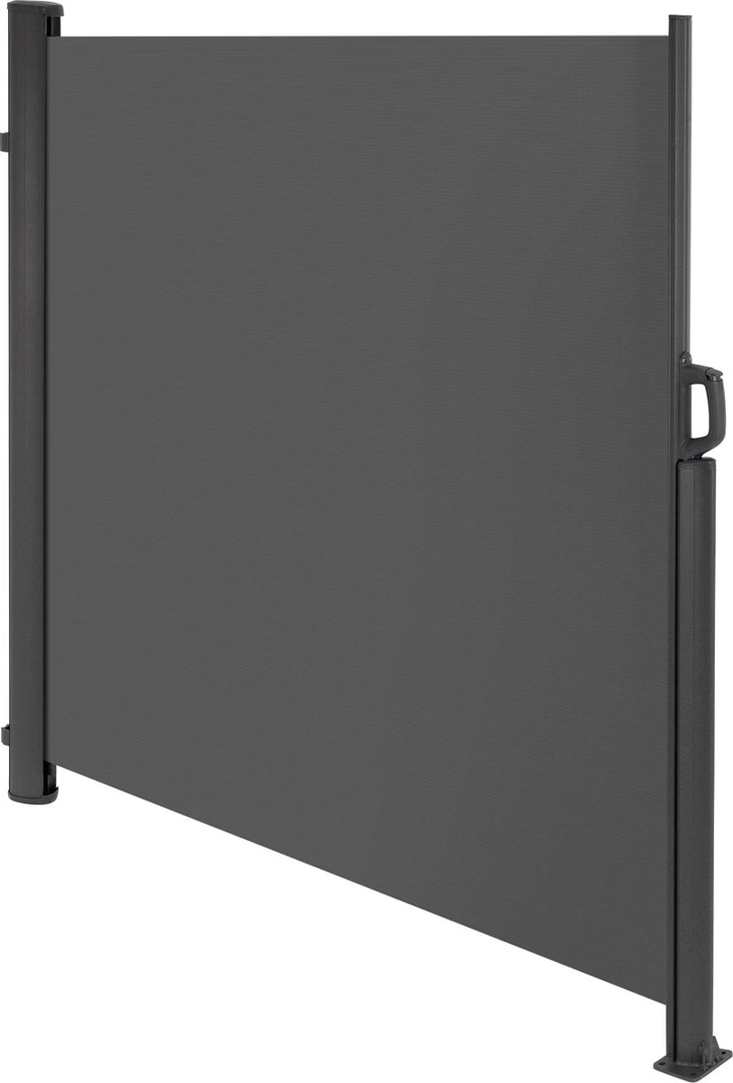 Dit oprolbare terrasscherm biedt je privacy en bescherming tegen de wind. Het frame is van aluminium en het polyester doek is voorzien van een waterafstotende coating. De wandcassette heeft een stevig veersysteem zodat het windscherm automatsich oprolt. Het windscherm is uitrolbaar tot max. 300 cm, de hoogte is 160 cm.