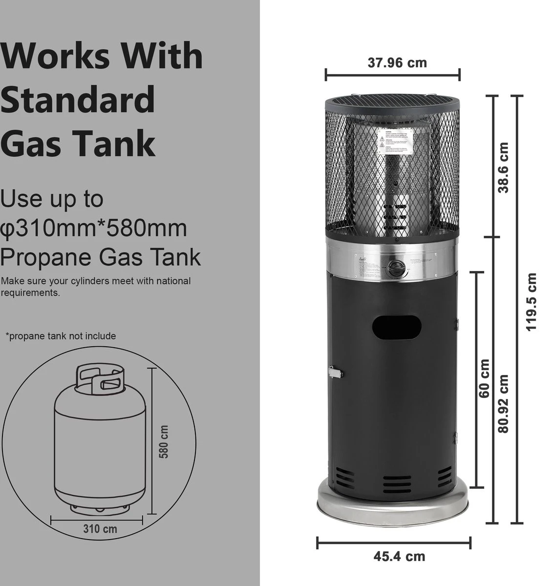 - Met een toegangsdeur voor de tank, aansluiting van de 11 kg gasfles binnenin de stand