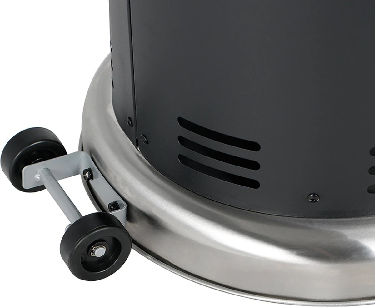 De Balioutdoors lounge terrasverwarmer is volledig gemaakt van edelstaal en is geschikt voor 5 tot 11 kg gasfles (incl. 50cm toevoerleiding en drukregelaar 30mbar) welke in heet onderstel past. Met behulp van het windscherm kan het verwarmingsvermogen tot 7,3kW met een gasverbruik van ca. 531g/u optimaal worden benut. Bovendien is de Balioutdoors lounge terrasverwarmer uitgerust met een omvalbeveiliging. Met de robuuste buitenwielen kan de terrasverwarmer optimaal in de tuin en op terrassen worden geplaatst. De Balioutdoors Lounge terrasverwarmer is eenvoudig te starten met de piëzo ontsteking.