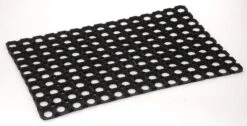 Deze rubberen deurmat is voorzien van een klassiek ontwerp en schrapt het vuil. Zo blijft het meeste vuil in de mat hangen en blijft uw woning, tent of caravan schoon. De onderkant is voorzien van een anti-slip laag, zo blijft deze liggen op de grond en verschuift deze niet. Deze mat kan ook tegen water.