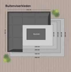 Het buiten vloerkleed is in de maten: