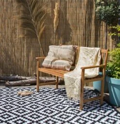 Met een buitenkleed voeg je in één klap een flinke dosis stijl toe aan je tuin of balkon. Is jouw tuin lekker groen? Dan is het een goed idee om te kiezen voor een zwart-wit buitenkleed. Dit contrasteert mooi met de planten en is hierdoor een eyecatcher. Zeker als je kiest voor een exemplaar met een opvallend grafisch patroon. Plaats het kleed onder de loungeset of maak er een sfeervolle speelplek mee voor de kinderen. Fijn op een vuile of hete ondergrond!