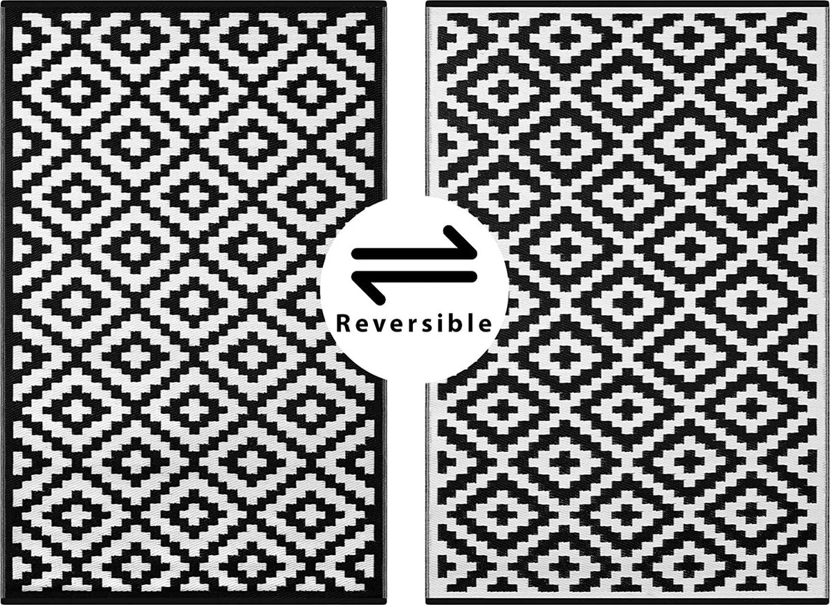 Ideaal voor in de tuin, in huis, op de camping of op het strand. Het heeft een mooi zwart wit patroon en is aan 2 kanten te gebruiken.