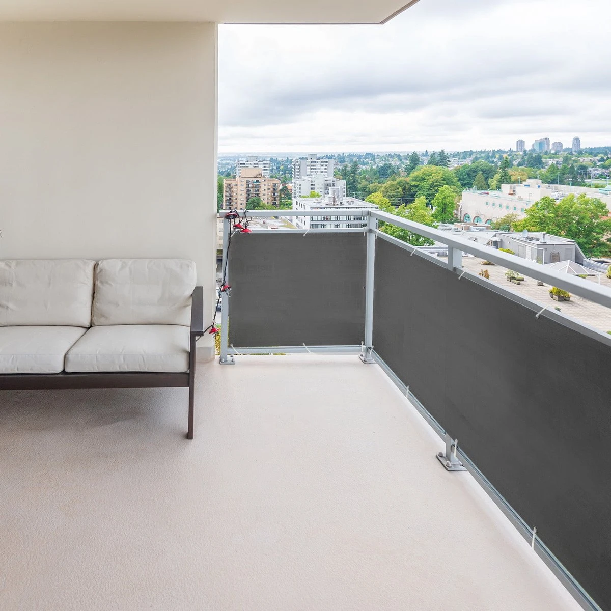 Onze grijze balkonscherm van Casa Pura biedt u optimale bescherming tegen blikken, wind en zon. Hij kan aan hekwerken aangebracht worden of dient als design afscheiding van zithoekjes in de tuin.