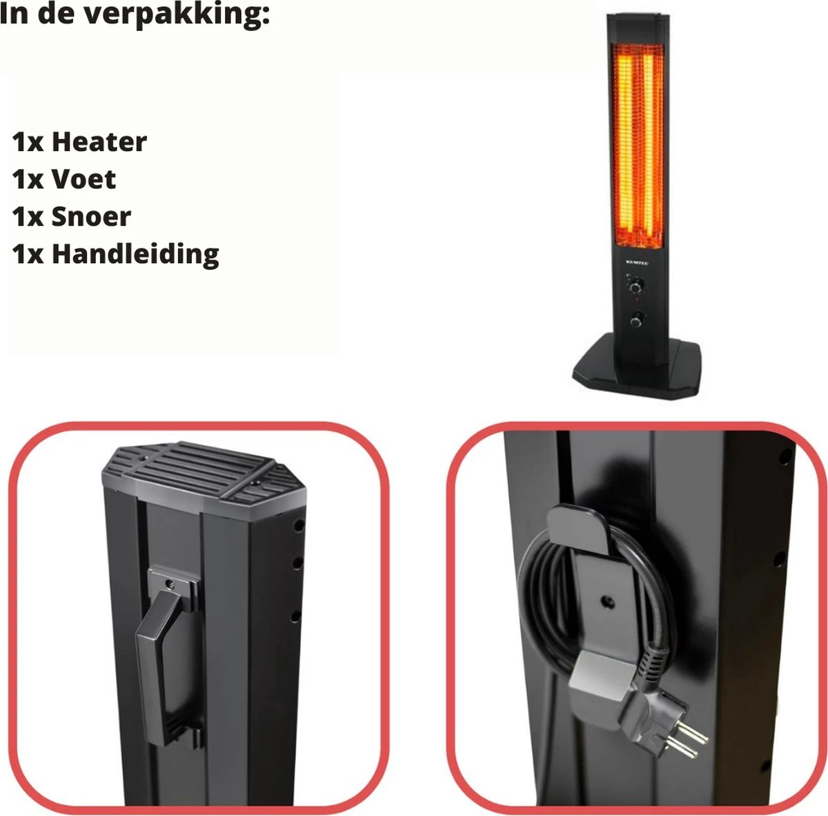 Deze kwarts toren heater heeft een maximaal vermogen van 2300 Watt en is hierdoor geschikt voor oppervlaktes tot 25 m2. De heater kan eenvoudig aan een muur gemonteerd worden. De behuizing is gemaakt van hoogwaardig metaal, dit maakt de heater duurzaam. Door gebruik te maken van hoogwaardige componenten kunnen we de kwaliteit waarborgen en 2 jaar garantie geven.