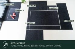 Elke woning, winkel of kantoor verdient een goede deurmat. Of je nu zoekt naar een deurmat, schoonloopmat of droogloopmat voor binnen… met de grijze CLASSIC deurmat 120×180 cm ben je aan het goede adres. Deze grote antislip droogloopmat is geschikt voor alle vloeren en absorbeert het vocht sneller door het gebruik van multivezels. Hierdoor blijft het vuil achter op de deurmat en blijft je vloer binnen droog en proper. Bovendien is deze antislip deurmat extra duurzaam.