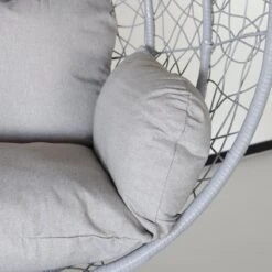 Deze moderne grijze hangstoel heeft een mooie Egg vorm. Hierdoor kan deze hangstoel voor zowel werk als voor ontspanning gebruikt worden. Het frame van de stoel is gemaakt van metaal, de stoel zelf is gemaakt van Wicker met metalen ondersteuningen. Hierdoor kan de hangstoel zowel binnen als overkapt buiten geplaatst worden, mits jij er zorg voor draagt dat deze schoon en droog staat. Het is namelijk nog steeds metaal, wat in een vochtige omgeving kan gaan roesten! Deze stoel staat leuk in zowel de woon- en slaapkamer als in de tuin. Geniet van de zonnestralen terwijl je lekker aan het lezen bent of lees voordat je naar bed gaat nog even comfortabel in deze hangstoel. Ook leuk voor kinderen om in de slaapkamer te hebben!
