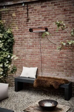 De elektrische heater is geschikt om aan de muur bevestigd te worden. Hierdoor neemt hij geen ruimte in beslag op de grond. Voordeel daarvan is dat je in de voortuin of overkapping ruimte overhoudt voor andere spullen, zoals een tuinmeubelset of plantenbakken. Ook kan je er niet over struikelen en kan hij niet omvallen, zoals bij een staande heater wel het geval is.