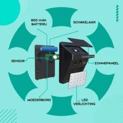 Een buitenlamp op zonne-energie is erg praktisch. Je zit niet vast aan stroompunten. Hang de lamp op met maar één schroef en je bent klaar! In de lamp zit een 2000 mAh accu die 8 uur per laadbeurt meegaat. Daarnaast wordt de opgebouwde zonne-energie efficiënt gebruikt dankzij de bewegingssensor.
