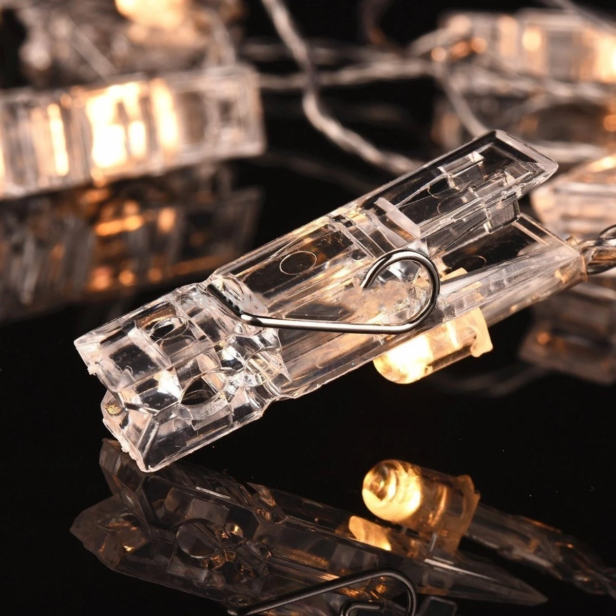 Foto Lichtsnoer Met Knijpers – Warm White – 1.5 Meter, 10 Lichtjes – LED – Wit Licht – Voor Foto’s – Batterij