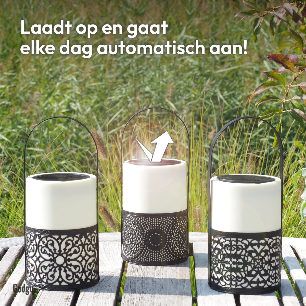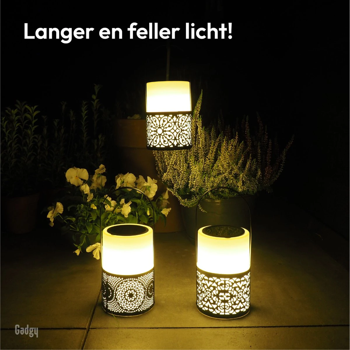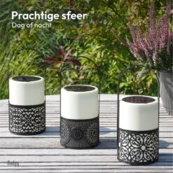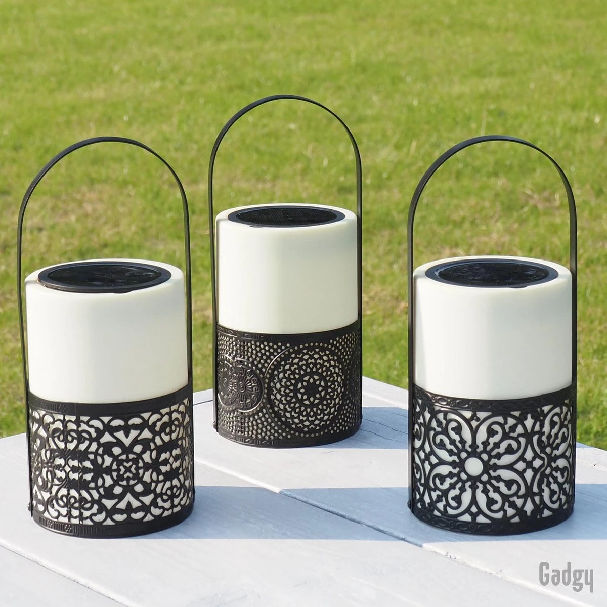 De Gadgy Solar Lantaarns zwart/wit zijn een schitterende decoratie voor je terras of tuin. Deze set bestaat uit 3 mooie lantaarns, met elk een ander ontwerp en metalen handvat. De lantaarns worden opgeladen door zonlicht, waardoor dit een duurzaam alternatief is voor lampen op batterijen en een veilig alternatief voor kaarsen. Zet eenmalig de schakelaar op ON en vervolgens gaan de lampen elke avond automatisch aan in het donker en uit zodra het licht wordt. Daarnaast zijn de lampen spatwaterdicht, waardoor je je niet druk hoeft te maken om een regenbui. Ook leuk als cadeau voor iemand anders!