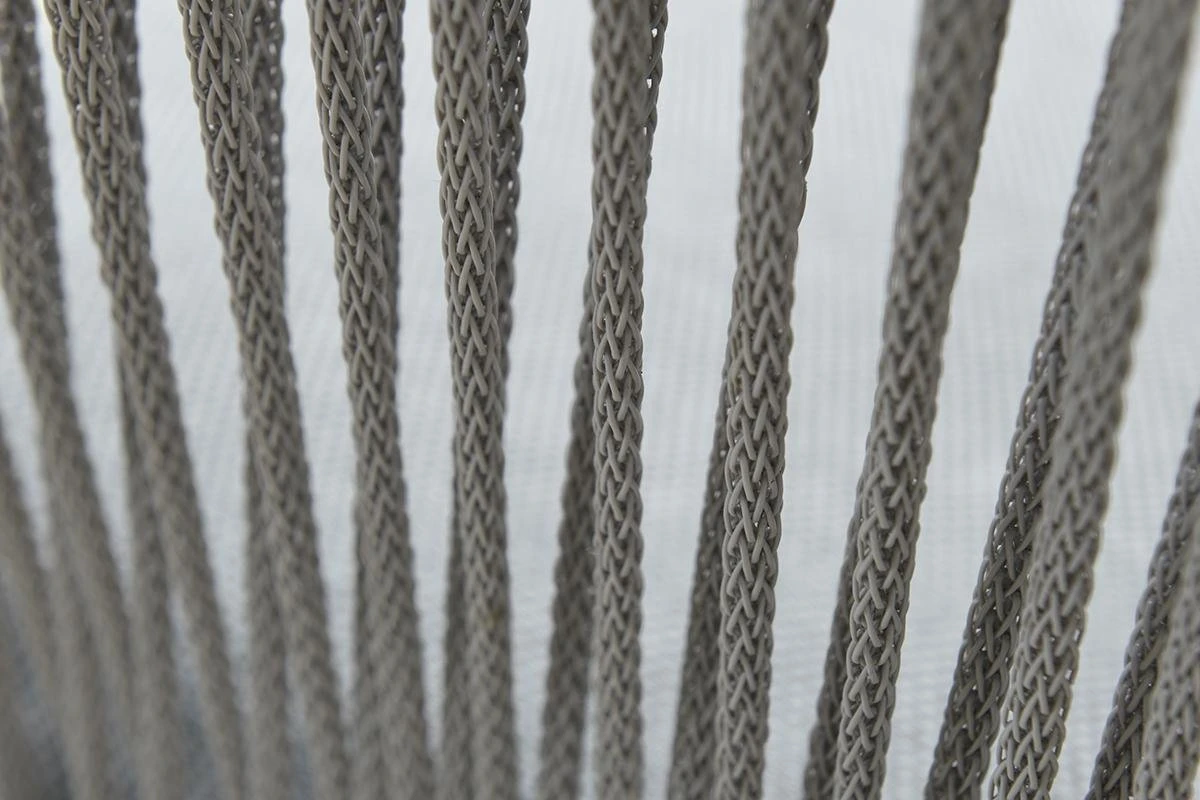 De loungeset heeft een aluminium frame, welke gecoat is. Hierdoor is de set onderhoudsvriendelijk en weerbestendig. In de arm- en rugleuning zit rope verwerkt. Dit is een kunststof touw dat een speels effect geeft aan de loungeset. Rope is een trendy materiaal wat steeds meer gebruikt wordt in tuinmeubelen. Het touw is sterk en onderhoudsvriendelijk. De meegeleverde kussens hebben een waterafstotende coating en afritsbare kussenhoezen.