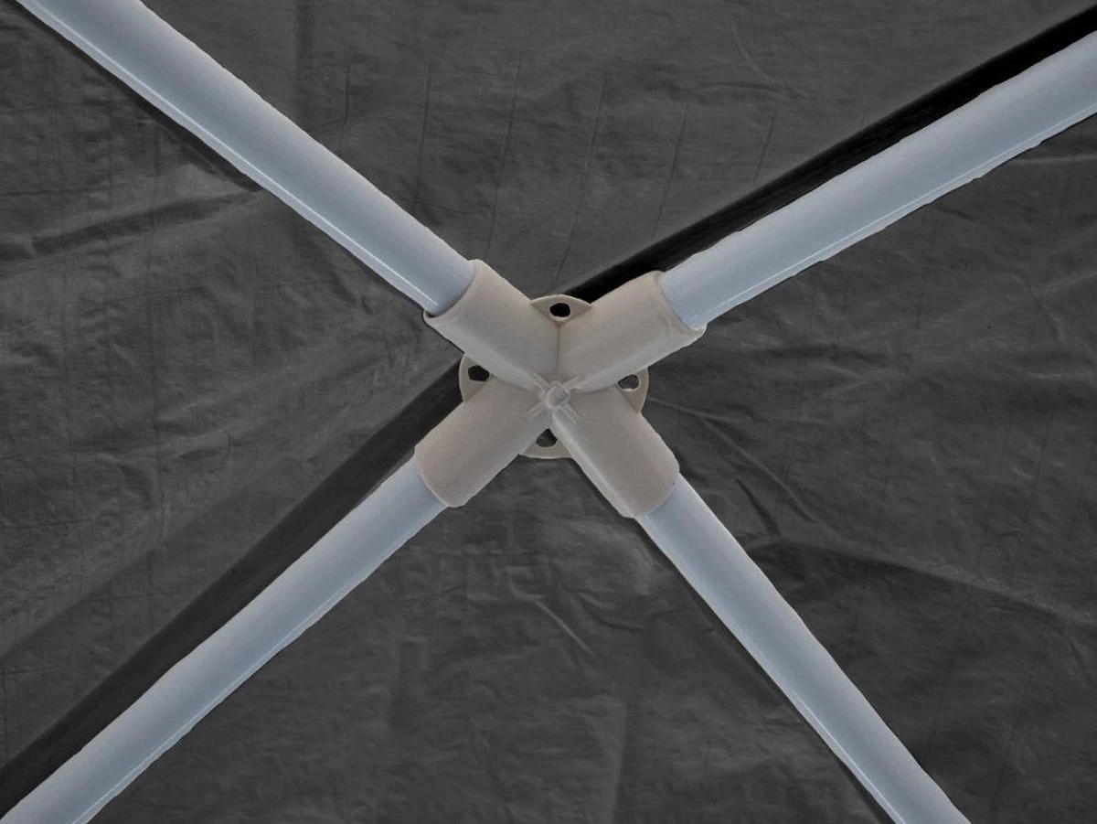 Deze partytent van 3×3 meter met 2 zijwanden heeft een waterdicht PE (kunstof) doek