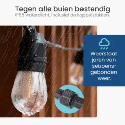 Dankzij de IP65-rating is de Gologi lichtslinger water- en stofdicht. Een flinke Hollandse regenbui is voor de lampjes geen enkel probleem. Je hoeft je dus geen zorgen te maken als je in de verte wat regenwolken aan ziet komen.