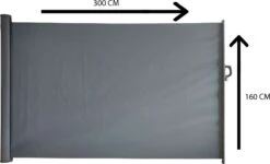 Dit moderne en stijlvolle windscherm van GoodVibes zorgt voor privacy en creëert een gezellige plek. Het biedt ook bescherming tegen de wind en de laagstaande zon. Het scherm is gemaakt van uv-bestendig, scheurbestendig polyester (220grams). De Aluminium cassette wordt verticaal geïnstalleerd en de uittrekbare luifel wordt daar direct uit getrokken. De breedte van het scherm is aan te passen tot maximaal 300 cm. Het zonnescherm heeft een automatische terugrolfunctie.