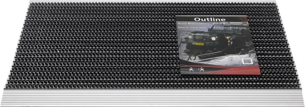 De Outline is dé topmat van HAMAT, heeft een chique en luxe uitstraling en heeft zich-zag’ende polypropyleen borsteltjes die zo dicht op elkaar staan, dat je nauwelijks ziet dat de Outline serie een ribben structuur heeft. Door een sterke verbinding van deze dunnen ribben, staan de borsteltjes niet alleen op elk individuele rib kort op elkaar, maar over de gehele mat. Door over de harde borsteltjes heen te lopen hoort u dat uw schoenen schoon worden.