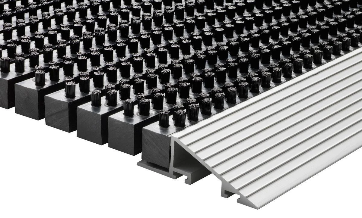 Ideale combinatie is buiten een harde borstelmat bv de Outline en binnen een droogloopmat of schoonloopmat.
