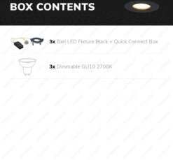 - Quick connector box: De Bari sluit je geheel zonder gebruik van gereedschap aan op het lichtnet door middel van de handige quick-connector box.