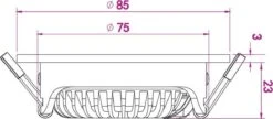 Deze LED-inbouwspots zijn zeer goed te dimmen zonder enig gezoem. Ook gaat het dimmen geheel traploos, wat een mooi effect heeft. De dimbare LED-inbouwspots kunnen gedimd worden met onze fase afsnijdende dimmer. De kleurenechtheid van de Led spots is CRI >97 wat betekent dat de kleuren zeer goed worden weergegeven. Hierdoor zijn deze LED-inbouwspots ook goed toepasbaar in winkels en showrooms waar een hoge kleurenechtheid van belang is.Dit type spot is naast zwart ook verkrijgbaar in wit en in RVS. De uitsparing die gezaagd dient te worden moet minimaal 75 mm zijn. De diameter van de buitenste rand is 85 mm en de inbouwdiepte is 23 mm. Heeft u momenteel een grotere uitsparing dan 85 mm of is het bestaande gat niet helemaal mooi rond? Dan kunt u gebruik maken van onze zwarte opvulringen. Deze dichten gaten af tot wel 120 mm.De spotjes moeten parallel geschakeld worden, hiervoor kunt u de 3-voudige lasklem en 2-aderig kabel gebruiken.