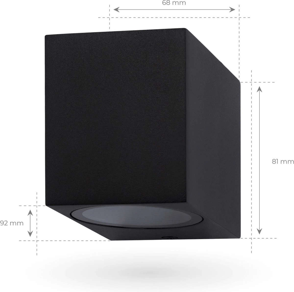 - Deze zwarte wandlamp is voorzien van GU10 fitting. De lichtkleur van de lamp is zelf te bepalen omdat er geen lamp wordt meegeleverd.