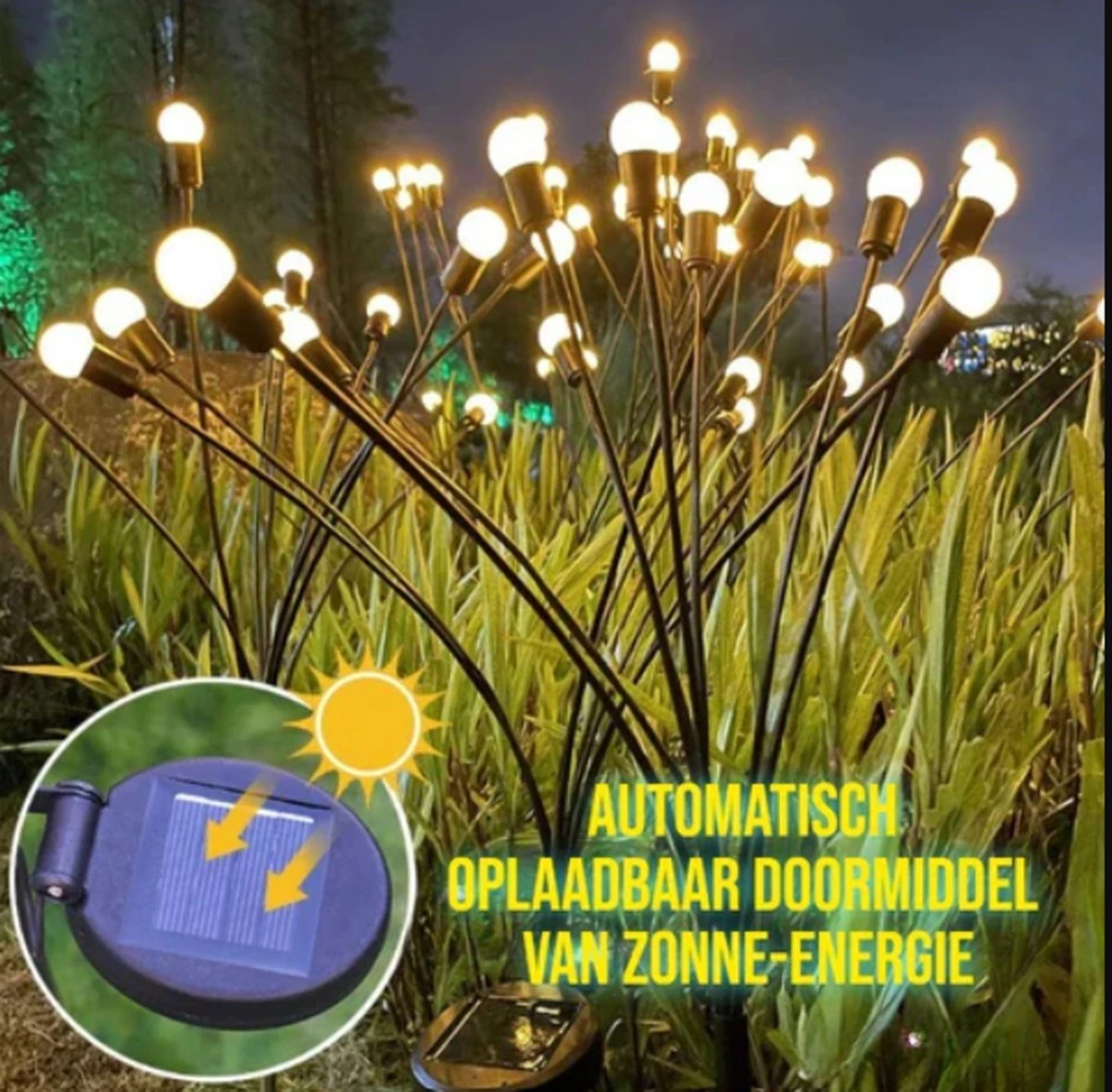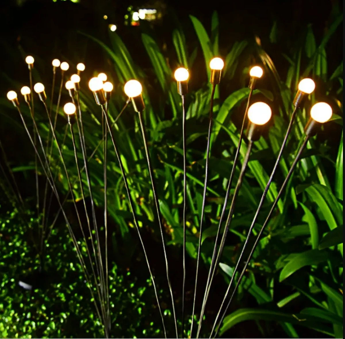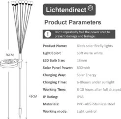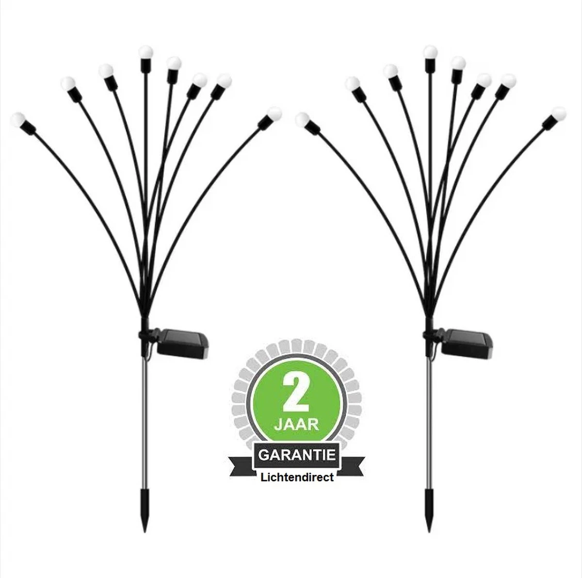 Wij leveren deze tuin solar lampen in set van 2 stuks. Per spies heeft de solar tuinlamp 8 led lampen.