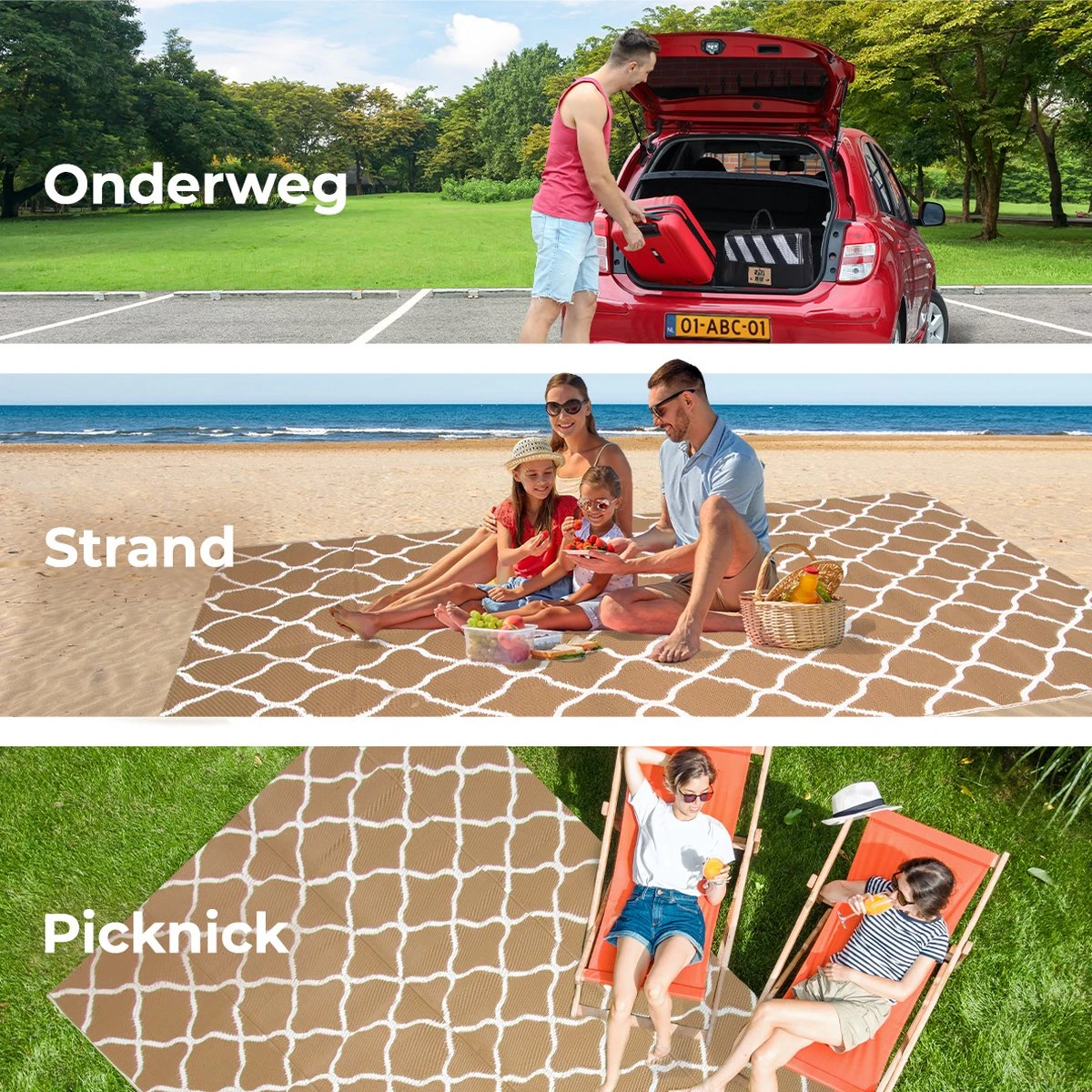 Het vloerkleed voor buiten is niet alleen een stijlvolle toevoeging voor je tuin, patio of veranda, maar is ook super eenvoudig mee te nemen dankzij de inbegrepen draagtas. Of je nu gaat voor een weekendje feesten op een festival of een picknick in het park, met de stevige draagtas bescherm je het vloerkleed en neem je ‘m gemakkelijk mee, waar de reis ook naartoe gaat! Upgrade je buitenactiviteit en neem de sfeer overal mee naartoe met het tuintapijt met patroon van LifeGoods!