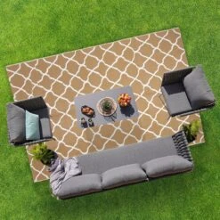 Ons buiten vloerkleed is gemaakt van de allerhoogste kwaliteit materialen om te zorgen dat het kleed jaren meegaat en elke weersomstandigheid kan doorstaan. Hierdoor garanderen we dat het vloerkleed voor buiten niet snel vervaagt of beschadigd raakt. Dit tuintapijt is meer dan een decoratie, het is een investering in de kwaliteit van jouw buitenruimte. Geniet jarenlang van de sfeer en de gezelligheid van jouw buitenruimte met dit buiten vloerkleed!