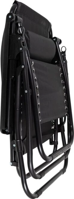 Luxe Ligstoel Met Hoofdsteun & Voetsteun – Verstelbare Rugleuning – Zonnebed Relaxstoel Voor Tuin/Terras/Strand/Balkon/Zwembad/Camping – Inklapbaar – Weerbestendig – Zwart