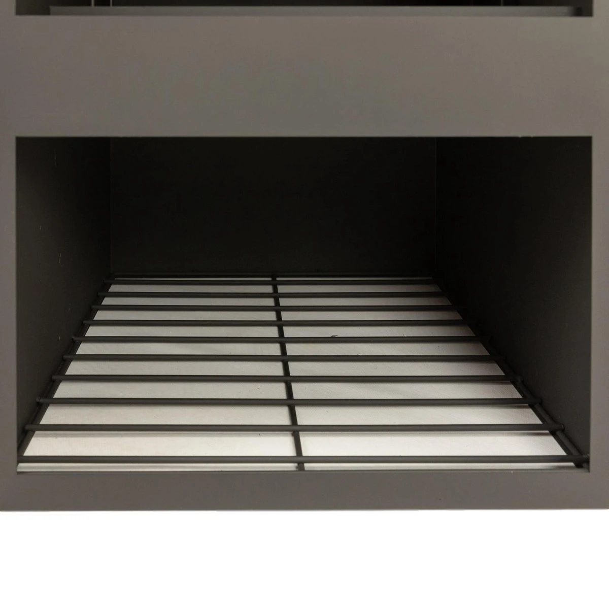 Aan de binnenkant van de tuinhaard is een extra rekje gemonteerd voor het opbranden van houtblokken en het beschermen van de onderplaat. Zo gaat je tuinhaard nog langer mee.