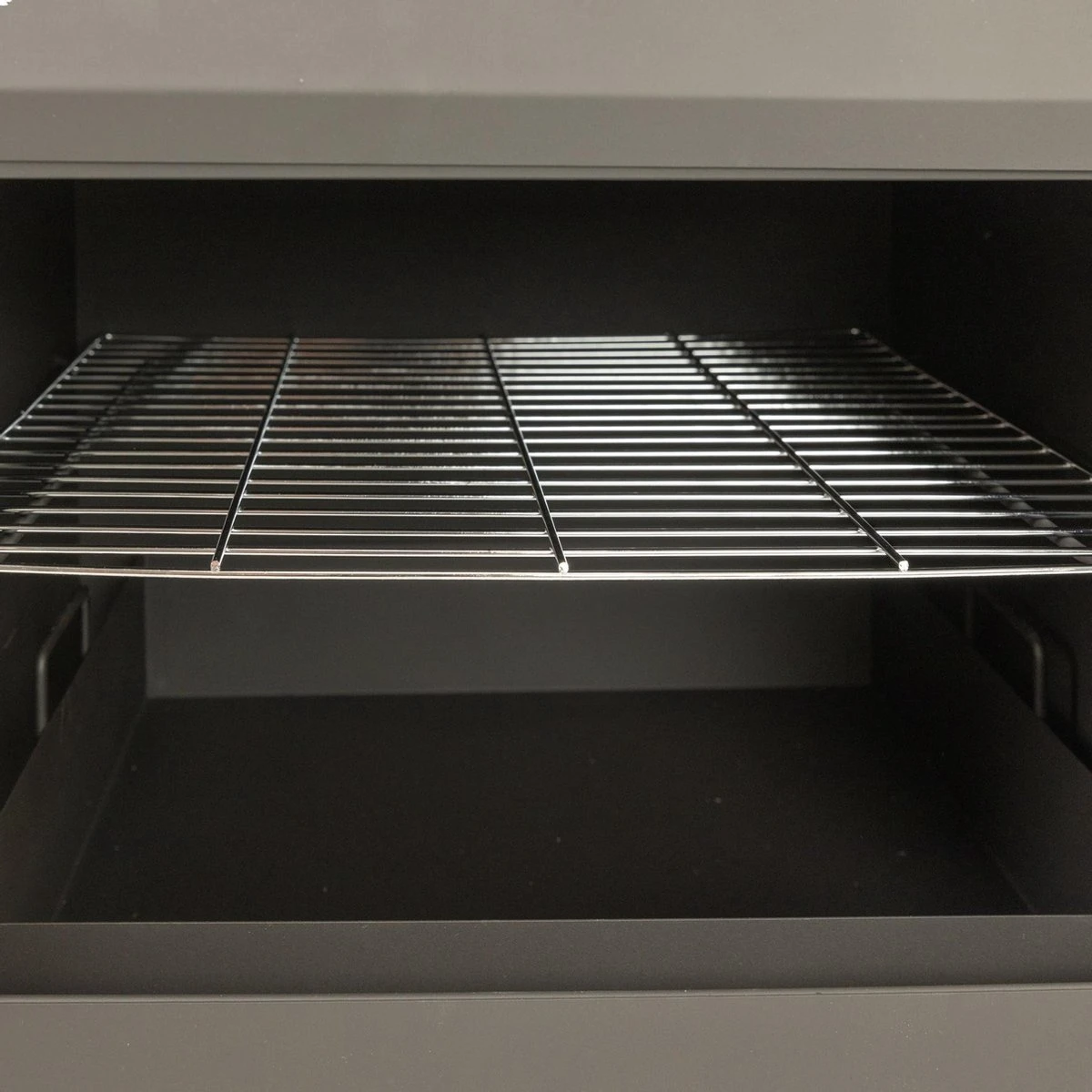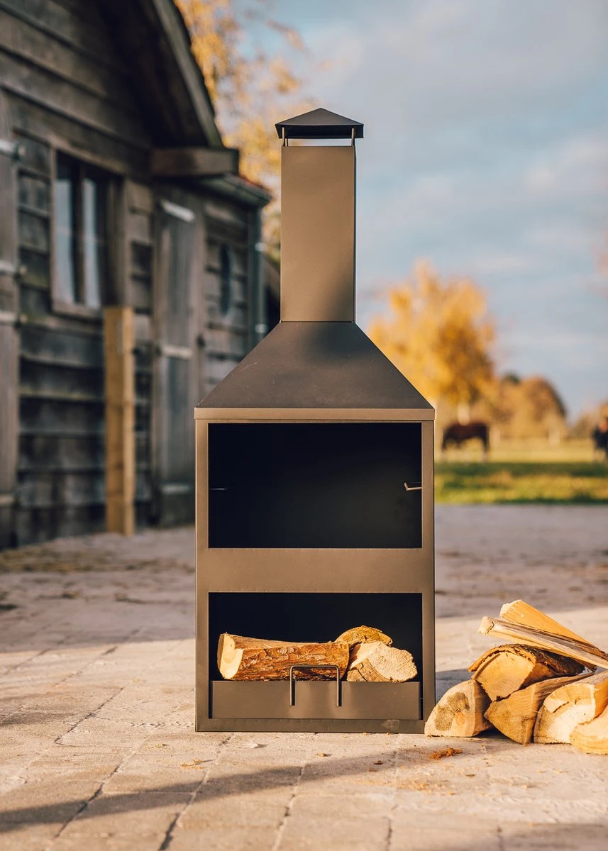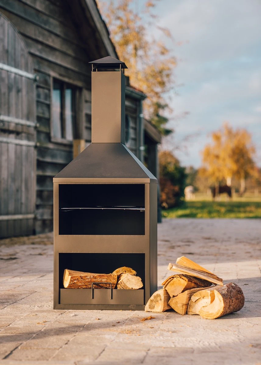 De schoorsteen zorgt ervoor dat de rook perfect wordt afgevoerd en is voorzien van een regenkap waardoor inregenen voorkomen wordt. Door de uitneembare asopvangbak verwijder je heel eenvoudig as- en houtresten.