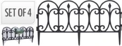 Set van 4x stuks lage tuinhekjes voor een planten of bloemen perkje. Tuinhekjes zwart van kunststof. De afmetingen per hekje zijn 60 cm breed en 30 cm hoog. Totale lengte te maken: 2.40 meter. Afbakening tuinranden.