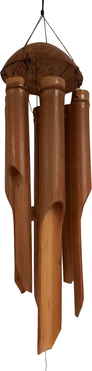 Deze windgong is gemaakt van bamboe. De totale lengte van de windgong is circa 90 centimeter. Het bamboe is gelakt met een blanke lak.