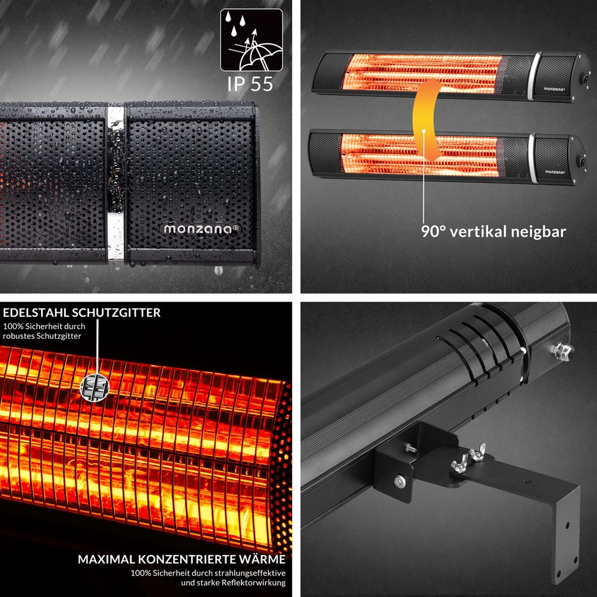 Monzana Infraroodstraler 2000W – 3 Standen Afstandsbediening – Zwart