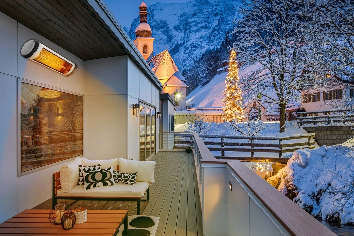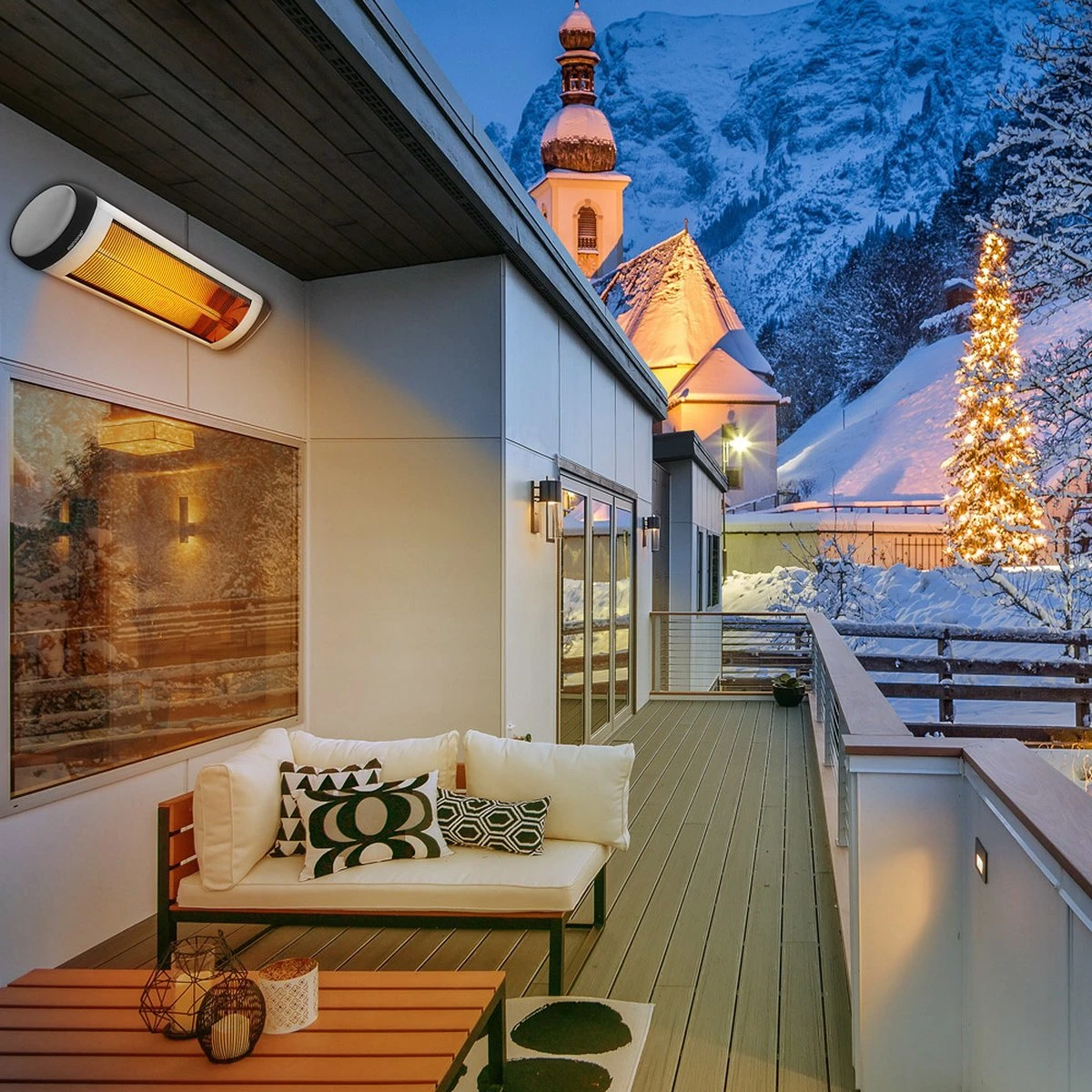 Dankzij het meegeleverde montagemateriaal kan de terasverwarming eenvoudig en probleemloos aan de muur bevestigd worden.