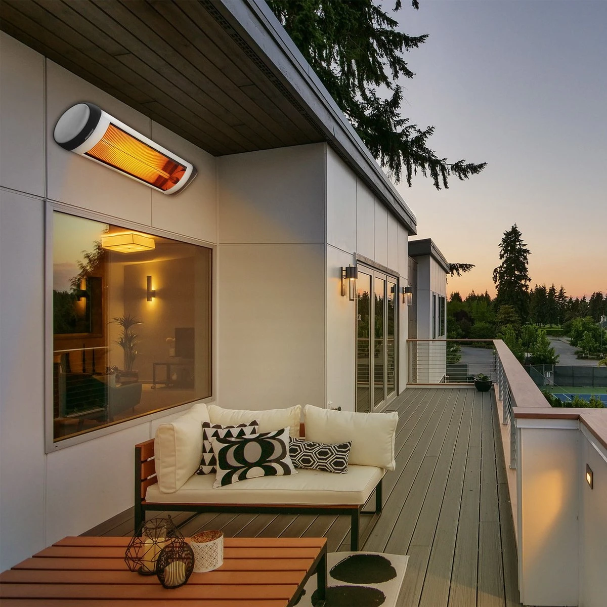 Dankzij deze moderne 2500 W warmtestraler kun je jouw overdekte buitenruimte, zonder voorverwarmen, efficiënt en snel optimaal verwarmen. Het voordeel is dat de lucht niet verwarmd wordt, maar dit geurloos en geruisloos gebeurt door middel van infraroodstralen. Met de afstandsbediening kun je kiezen tussen 3 warmteniveaus en via de 90° verstelbare kantelhoek individueel de warmtestralen sturen.