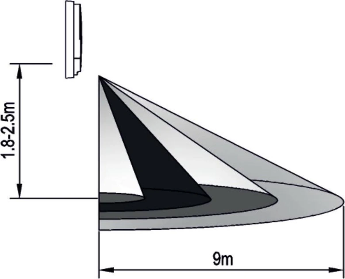 • detectiebereik: • tijdsduur instelbaar: ✔ 10 sec. tot 5 min. (traploos)