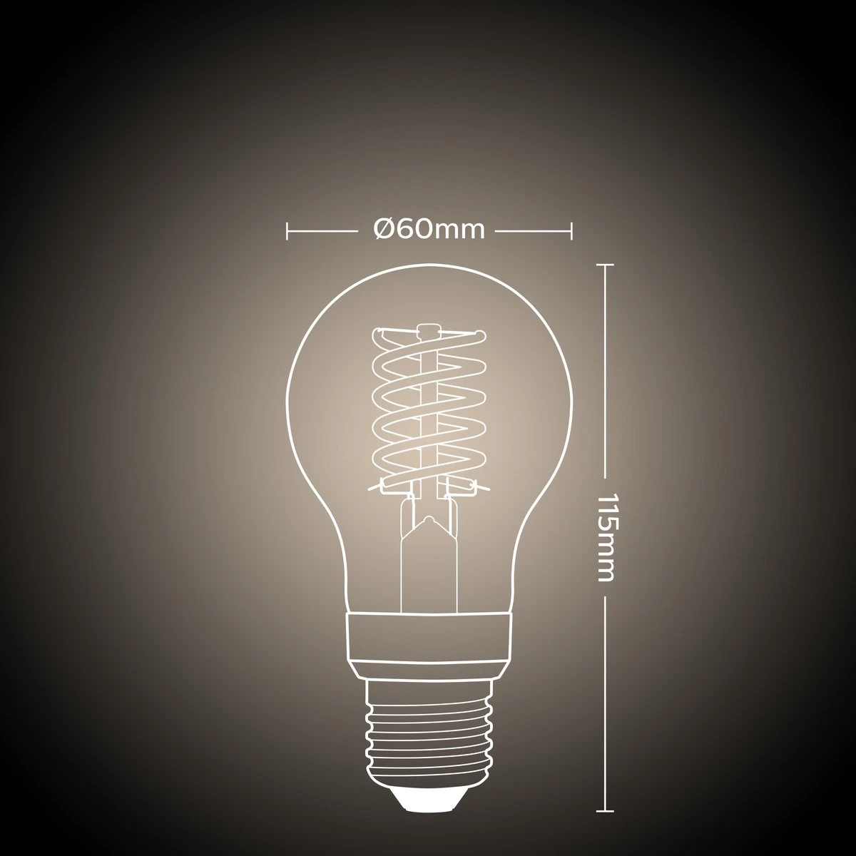 Het vintage ontwerp met de spiraalvormige gloeidraad van deze Philips Hue slimme decoratieve LED-lamp met E27-fitting zorgt voor een gezellige, warmwitte gloed. Met de Philips Hue app op je smartphone of tablet kun je de slimme lamp eenvoudig via Bluetooth in- en uitschakelen of dimmen.