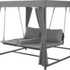 【Uitbreiding van de leefruimte】 Deze bank bevat een verscheidenheid aan functies, wat een goede keuze is voor u en uw familie om vrije tijd door te brengen en buiten van de zon te genieten. Deze bank kan worden omgezet in een bed of een ligstoel en kan worden gebruikt als een koppelstoel voor twee personen; Het kussen kan op de rugplaat worden geplaatst om uitglijden tijdens het gebruik te voorkomen; De bank bevat een afneembaar zonnescherm; De ligstoel heeft een functie van 3-snelheid(0-50°) hoekstand; De armleuningen bevatten een plank waarop u drankjes of mobiele telefoons kunt plaatsen.