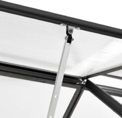 Deze massieve tuinkas is gemaakt van polycarbonaat panelen waardoor hij uv-bestendig en thermisch isolerend is. De kweekkas heeft een stevige en onderhoudsvrije constructie van aluminium voor extra stabiliteit. Het gotensysteem zorgt voor effectieve waterafvoer en het ventilatiegat in het dak zorgt voor optimale ventilatie op hete dagen. De dakpanelen worden bevestigd met metalen klemmen, wat zorgt voor stevigheid en duurzaamheid. Onze kas is eenvoudig te monteren.