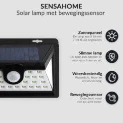 De SensaHomesolar zijn flexibel en mileuvriendelijk dankzij een zonnepaneel. Door het moderne design zijn de solarlampen een aanwinst voor iedere tuin. Deze variant wandlamp heeft maar liefst 34 LEDs. De lamp is binnen 7 a 8 uur volledig opgeladen bij voldoende zonlicht. Deze buitenlamp werkt op basis van zowel een bewegingssensor als een nachtsensor. De opgeslagen energie komt vrij als het donker wordt bij een beweging. De sensoren zorgen ervoor dat de lampen automatisch branden zodat jouw pad goed verlicht is. De zonnepanelen worden door zonlicht opgeladen en opgeslagen. Het verschil in kracht van de solar lampen komt naar voren in de aantal lumen die ze hebben.