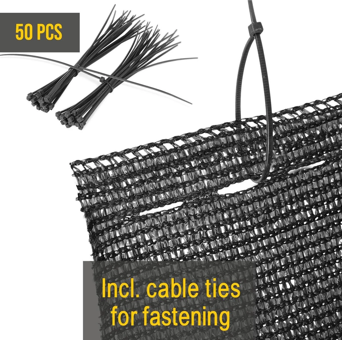 De stof is ademend en laat lucht en vocht door, zodat schimmel geen kans krijgt. Het schaduwdoek biedt een uitstekende UV-bescherming. Schadelijke UV-straling wordt geblokkeerd, waardoor uw tuin en bloembedden worden beschermd. Dit zichtdoek is verkrijgbaar in antraciet of groen, elk met een hoogte van 100, 150 tot 200 cm. Voor de breedte kunt u kiezen tussen 1000cm, 2500cm en 5000cm.