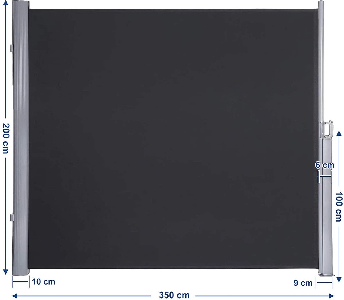 - Tot 3,5 meter privacybescherming – in volledig geopende toestand is de luifel (inclusief luifelkast en paal) 3,5 meter lang en kan eenvoudig worden uitgetrokken, veilig aan de luifelpaal worden bevestigd en met de terugrolfunctie weer in de cassette worden Productdetails: