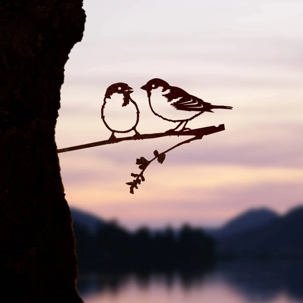 Een mooi natuurlijk kunstwerk voor buiten, gemaakt van hoogwaardig cortenstaal dat in de loop van tijd gaat roesten. Breng de gezelligheid en sfeer mee naar buiten. Of je nu een balkon, dakterras of een bos als achtertuin hebt, je neemt met deze decoratie de gezelligheid mee naar buiten. Het metalen ringmussen paar is gemakkelijk te monteren met een paar tikken tegen de hamer. Welk plekje je ook kiest, het zorgt voor sfeer op een natuurlijke manier.