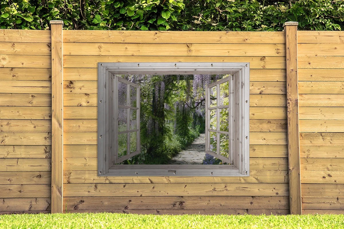 Tuinschilderij – Blauwe regen – Bloemen – Doorkijk – Boom – Lente – Tuinposters buiten