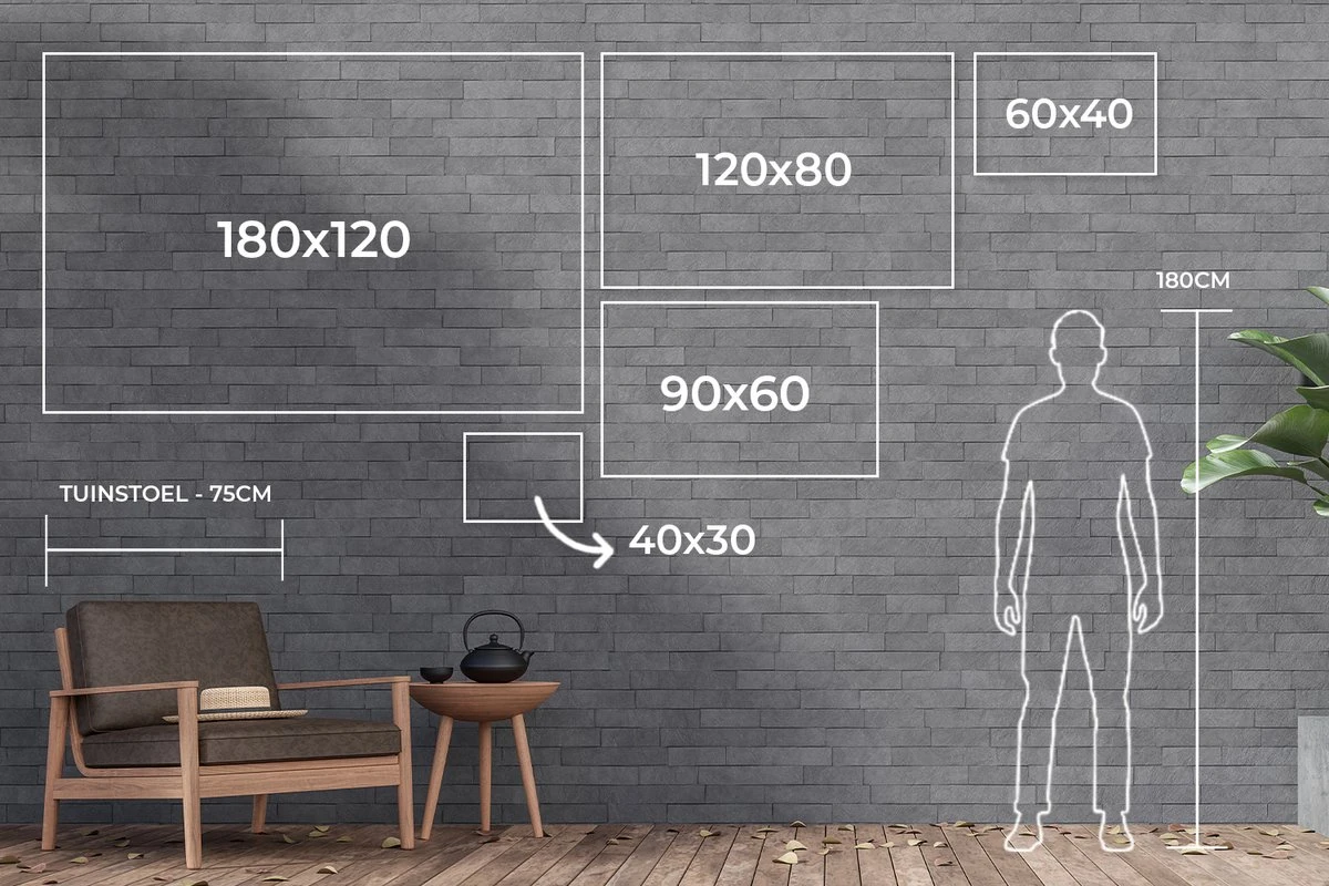 - Tuinposters in verschillende formaten verkrijgbaar van klein (40×60 cm) tot XL (180×120 cm)