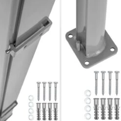 Technische Details:Totaal afmetingen uitgetrokken (BxH): max. 300 cm x 200 cm (incl. behuizing)Afmetingen behuizing (LxBxH): 11 x 10 x 200 cmAfmetingen grondplaten palen (LxB): 10 x 9 cmDiameter palen: Ø 60 mmAfmetingen van de stof (LxH): ca. 279 x 187,5 cmHoogte van de stof vanaf de grond: ca. 8 cmGewicht: 7 kgMateriaal: Textielsamenstelling doek 100% polyester (240 g / m²), PU-coating, schermbehuizing en steunpalen van gepoedercoat aluminium, kunststof elementen