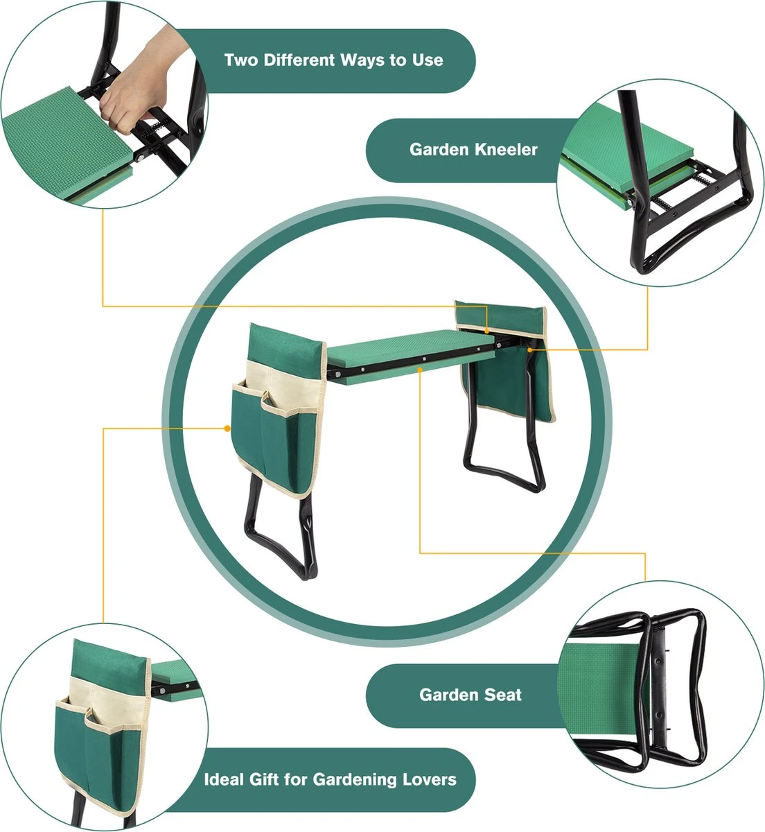 Uten Tuinknieler en zitje met 2 gereedschapstassen, opvouwbare tuinbankkrukken, draagbare knieler voor tuinders